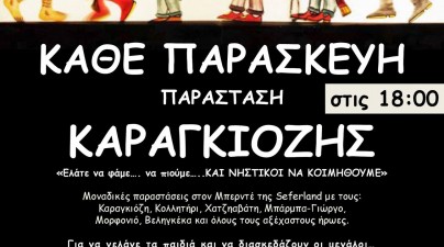 Από αυτή την Παρασκευή και κάθε Παρασκευή στις 18:00, στη θεατρική σκηνή του 1ου ορόφου της SeferLand, μας περιμένει και μία διαφορετική ιστορία θεάτρου σκιών, από την αγαπημένη μας σειρά παραστάσεων “ΟΙ ΠΕΡΙΠΕΤΕΙΕΣ ΤΟΥ ΚΑΡΑΓΚΙΟΖΗ” ▶ Με απίθανες φιγούρες και ξεκαρδιστικές ατάκες! ▶Μόνο με την τιμή της εισόδου ▶Δώρο για όλα τα παιδιά απεριόριστος χυμός+1